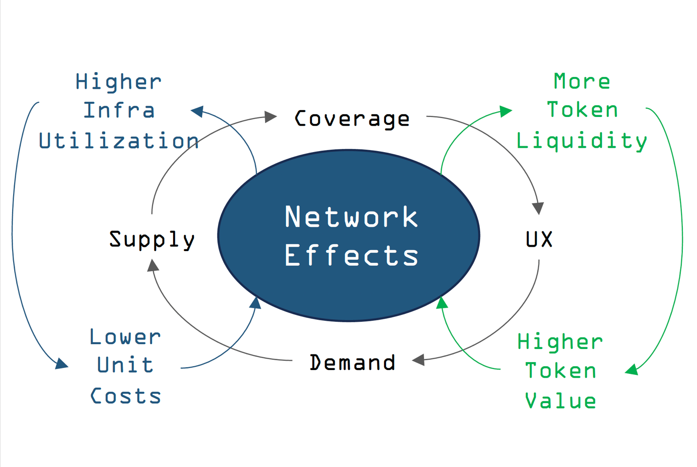 An advantage of DePIN is the powerful built-in network effects. As demand grows on the network, suppliers are incentive to add more compute to meet the demand; as more supply is available, greater coverage (geographic as well as for an increasing number of games) becomes available; and as coverage expands, it simultaneously improves quality-of-service as well as lowers the risk for games to adopt the network. That, in turn, results in more transactions, greater liquidity, and accrual of value for native network tokens.&#x20;
