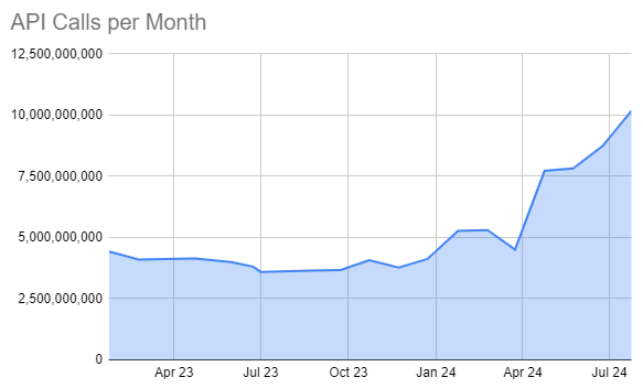 One of the most challenging aspects of starting a new DePIN project is overcoming the cold-start problem inherent in any two-sided marketplace: gathering enough demand to make providing capacity attractive to suppliers. Fortunately, Beamable’s backend platform has enjoyed substantial growth. The API calls on the platform represent activity that will be progressively shifted towards the DePIN network to provide suppliers with demand.