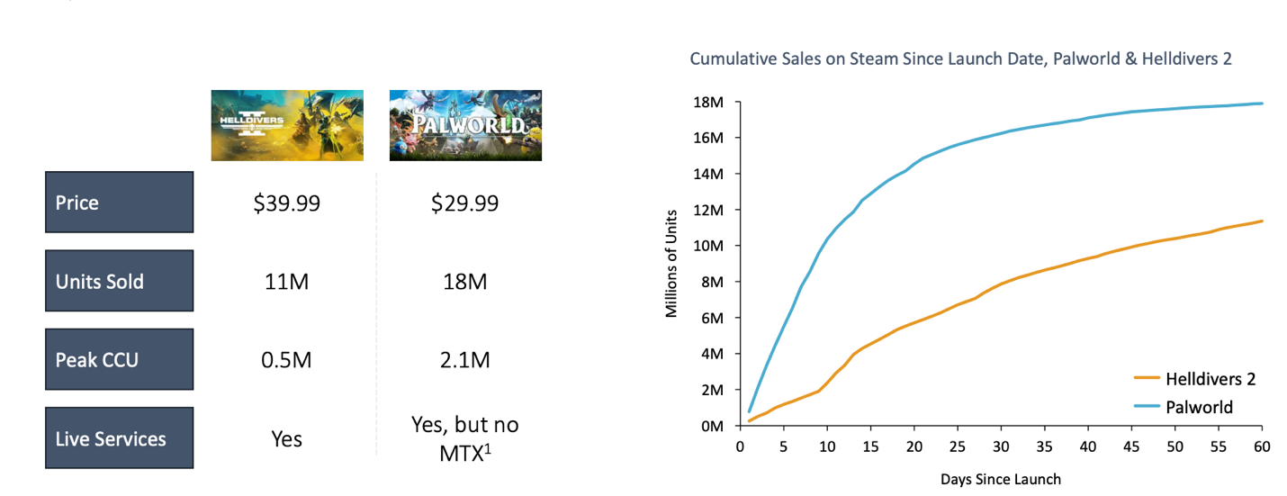 In 2024, the most successful new launches on Steam (Palworld, Helldivers 2) were live games built by smaller teams: